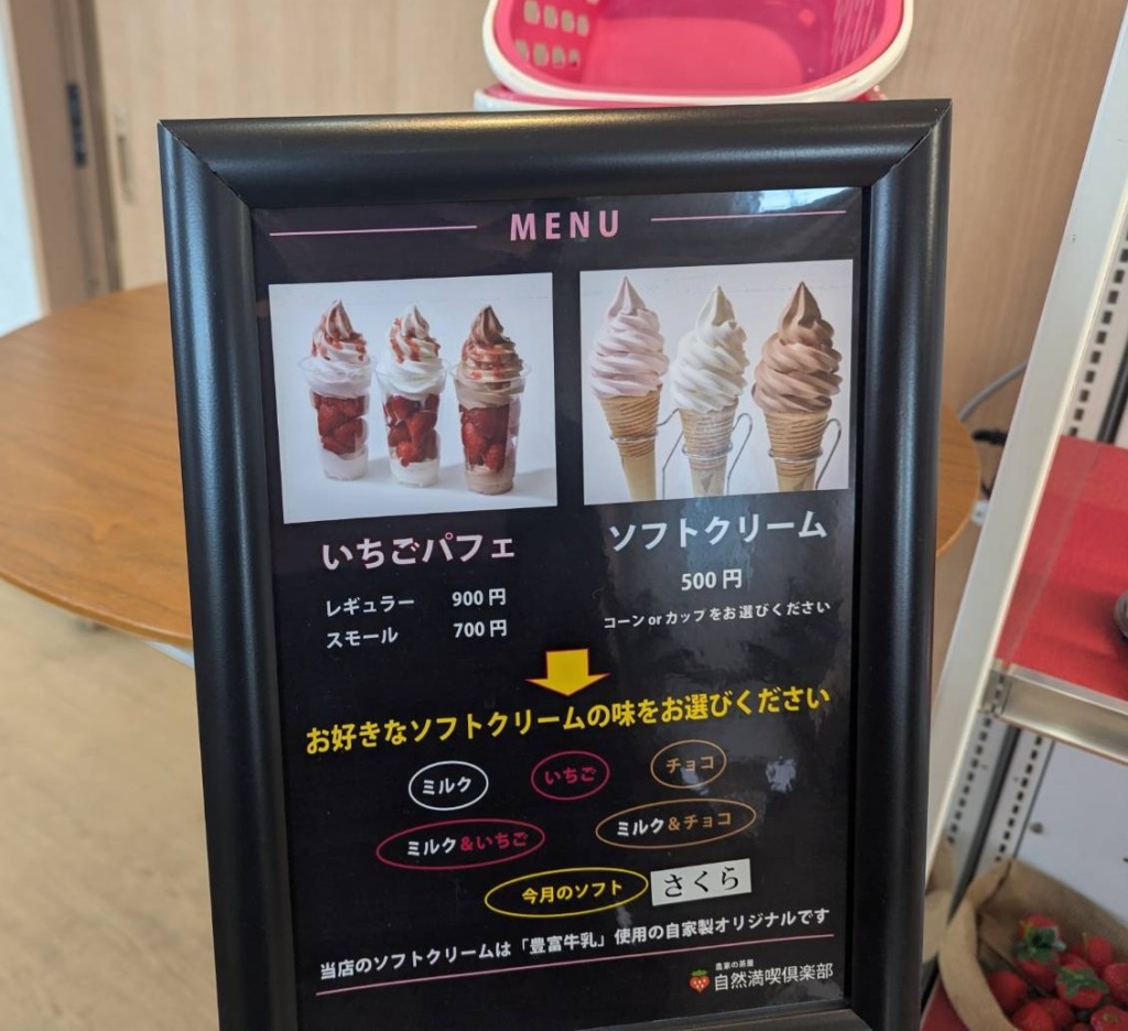 “Nature’s Delight Club,” a soft-serve ice cream shop operated by a strawberry farm