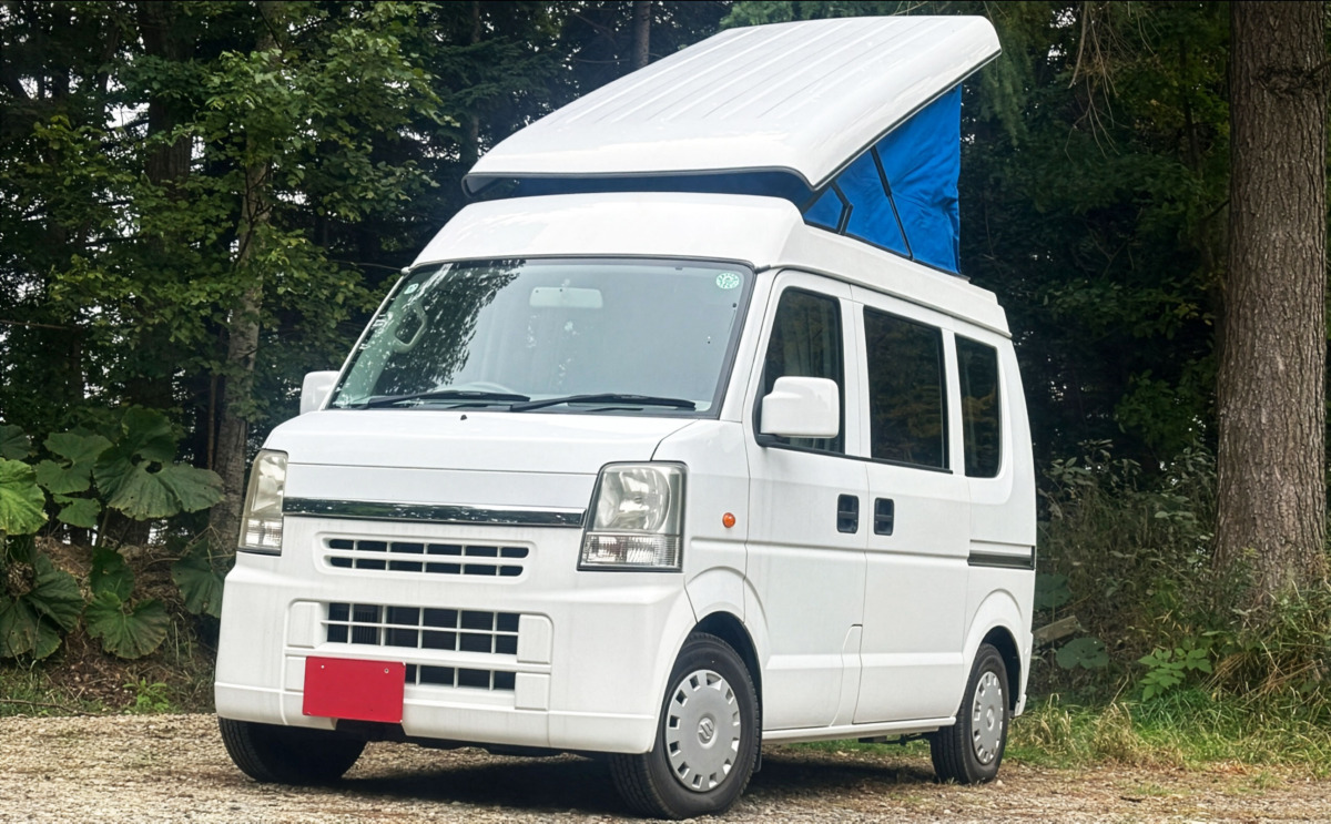 軽自動車キャンピングカーの屋根が斜めに跳ね上がりロフトベッドになる面白いCamper.